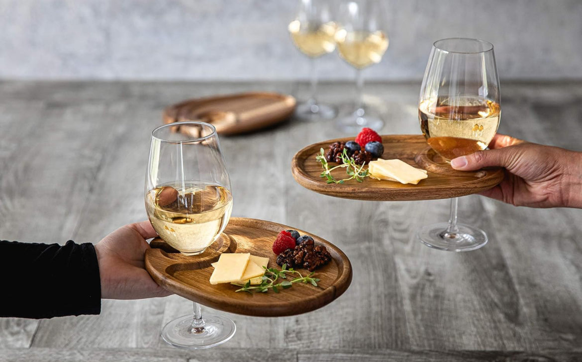 The side edge is cut out to hold the wine glass securely. (Wine Glass included)